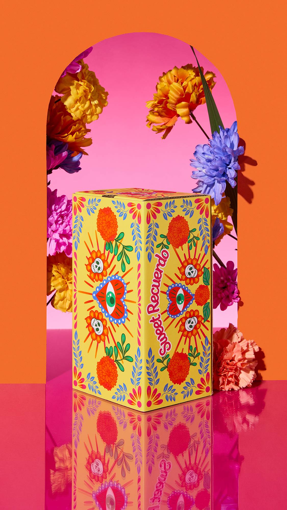 The beautiful design was created by California based graphic designer and illustrator, Blanca Molina. Born in Mexico, Blanca is inspired by her Mexican heritage and aims to inspire happiness, nostalgia and creativity with her work. She’s said about this gift, “Día de Muertos is a celebration where we honor and remember our loved ones in a positive way. With my design, I wanted to capture that same spirit — using vibrant colors and movement to reflect joy and life, while still honoring the traditional imagery of Día de Muertos.”